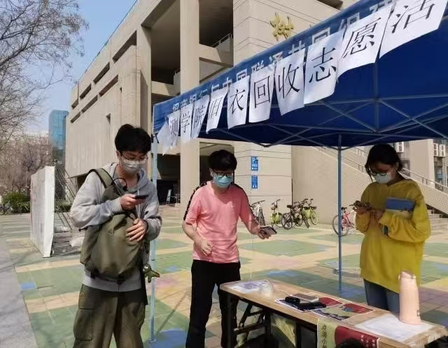 青年愿者服务队共同推出“爱为宝·废旧衣物回收再利用”活动。地测青志队设立帐篷点提供捐赠旧衣物平台,进行收集整合后移交陕西省慈善协会,发放给需要的群众。两期活动已顺利完结,共70多位同学参与,共收集100多公斤旧衣物。