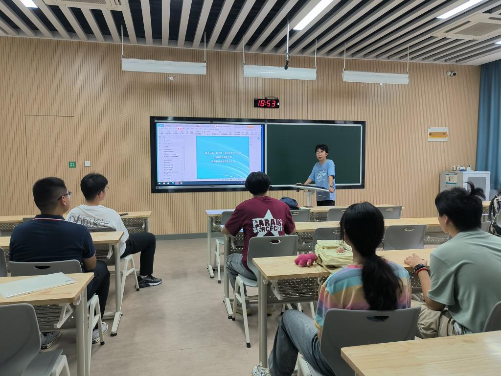 地测科协2023-2024届执行主席郭宝营与往届“北斗杯”国奖获得者、2024-2025届执行主席丁光盛担任模拟路演评委。在模拟路演之前,丁光盛针对本届北斗杯省赛文件进行解读分析,帮助参赛选手熟悉路演流程。