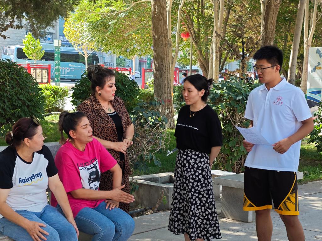 赴新疆焉耆“青春支教展青年风采·携手共进铸民族之谱”暑期社会实践队前往焉耆县人民文化广场进行采访调研。