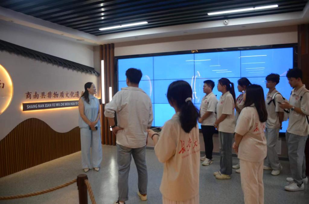 此外,实践队一行还参观了商南县文化馆非遗展厅,从历史悠久的花灯、试马花棍,到独具特色的商南绒绣、香包,再到技艺精湛的手工制茶、竹编、石艺等,每一件展品都承载着商南人民世代相传的智慧与汗水,展现了商南县深厚的文化底蕴和艺术魅力。这些非物质文化遗产不仅是乡村文化的瑰宝,也是乡风文明的重要载体,更推动了当地经济的多元化发展。通过此次探访,队员们更加坚定了传承和弘扬优秀传统文化的决心,同时也意识到在乡村振兴中保护和挖掘乡村文化的重要性。