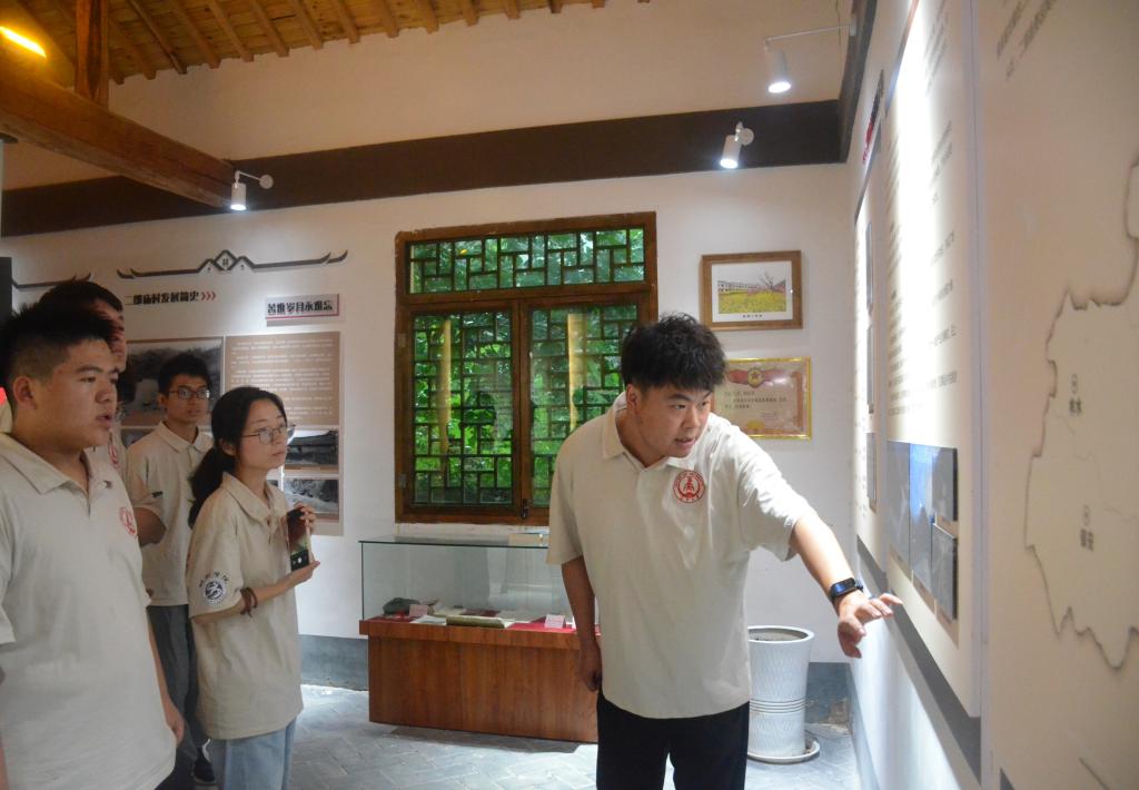 二郎庙村始终把文明乡风作为推进乡村振兴的重要途径,不断丰富活动载体,实现道德教化润心、文化服务暖心。为深入了解二郎庙村的历史文化底蕴,实践队一行参观了二郎庙村史馆。在村史馆中,一幅幅珍贵的老照片、一件件承载着岁月记忆的实物,让队员们感受到了二郎庙村从贫穷落后到繁荣振兴的沧桑巨变。“苦难岁月永难忘,撸起袖子加油干,阔步迈进新时代。”是二郎庙村脱贫之路的缩影。清光绪三年,二郎庙村遭大旱;民国时期,二郎庙村经历横征暴敛,半数以上农民没有饭吃;解放以前,深受土匪烧杀抢掠。新中国成立之后,二郎庙村紧跟党的领导,建成武关河电站、开通道路。党的十八大以来,二郎庙村依托村情实际,完善发展规划,整合优势产业资源,聚力抓好脱贫攻坚、迈向小康路。如今,二郎庙村在新一轮的乡村振兴帮扶下,以秦岭山水乡村建设为抓手,加快打造精品乡村休闲游,昂首阔步向前进。