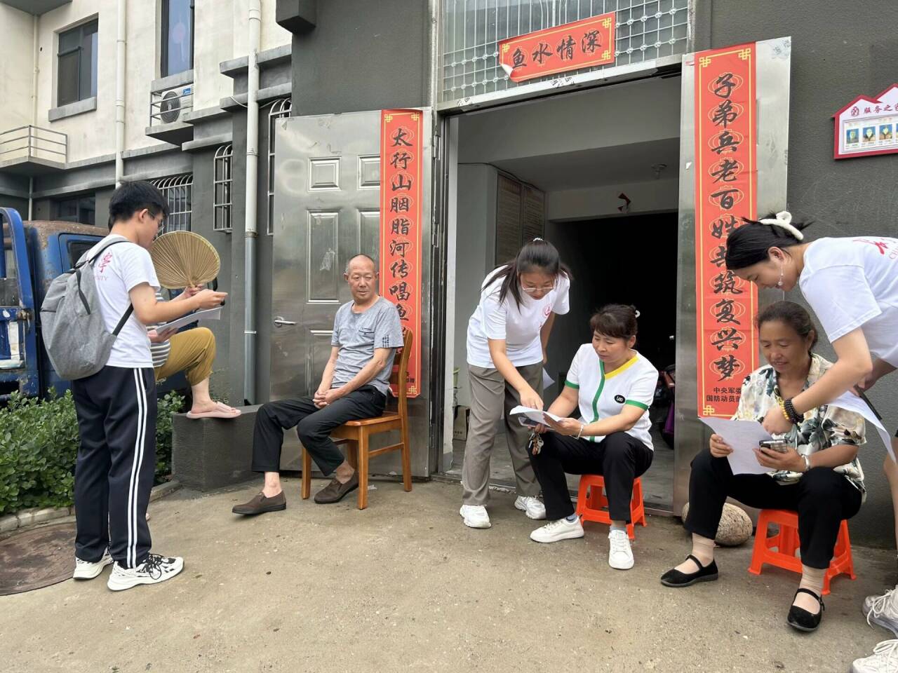 实践队在店房村书苑进行读书会实践队与店房村的杨爷爷一同阅览《阜平县志》