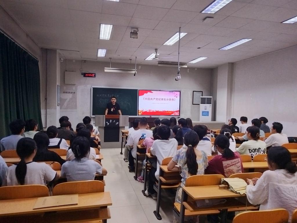 委员会开展党纪学习教育的实施方案》,对各级党组织和党员的学习内容、学习方式进行明确要求,切实抓好理论武装;以毕业生党员为主体,通过“年级大会、支部大会、支部书记讲党课”等多种形式上好一节党纪学习教育党课,坚定前行信念;将过好一次“政治生日”、重温入党誓词等作为毕业生党员教育的重要载体,强化党员身份意识,永葆政治本色。