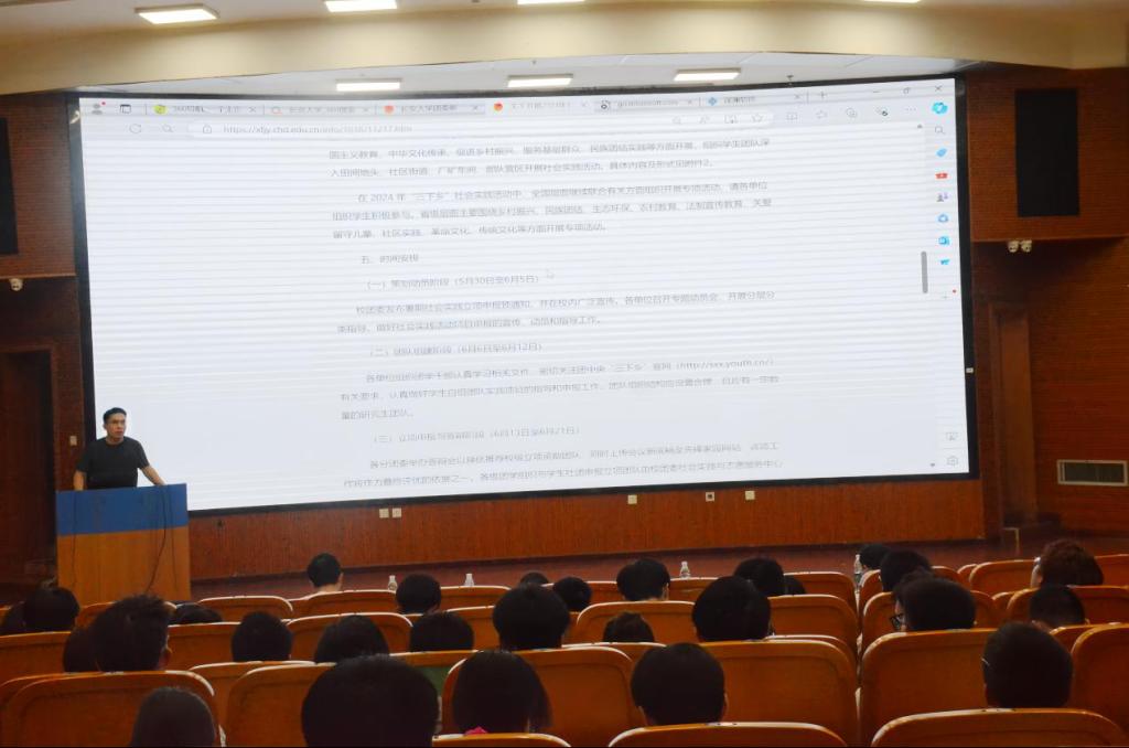 暑期社会实践文件为同学们进行了详细的解读,介绍暑期社会实践的要求。暑期社会实践分为个人实践和团队实践两种形式,以“青春为中国式现代化挺膺担当”为主题,主要围绕学习宣传习近平新时代中国特色社会主义思想、爱国主义教育、中华文化传承、促进乡村振兴、服务基层群众、民族团结实践等方面开展。