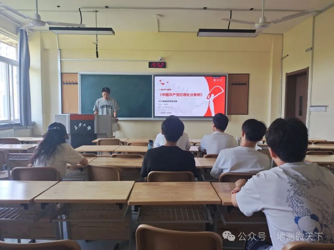 为深入学习《中国共产党纪律处分条例》,切实落实好习近平总书记在中国共产党第二十届中央纪律检查委员会第三次全体会议的重要讲话精神,2024年5月13日下午,2023级测绘专硕党支部于色情漫画