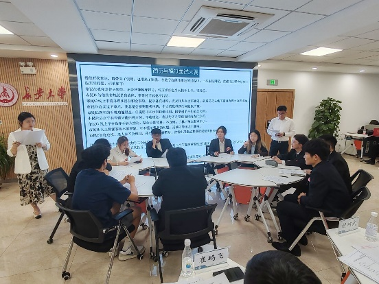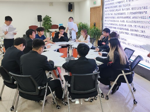 本次决赛分为两个部分:小组面试和无领导小组讨论。在小组面试环节,选手们分组上台,在一分钟时间内,从自身的教育经历、实习经验、求职意向等方面进行自我介绍,评委们则针对选手的简历和自我介绍情况,从专业知识、价值取向、困难应对等方面对选手提出问题,由选手现场作答。在无领导小组讨论环节,选手们在给定的30分钟时间内,根据题目展开讨论,最后按题目要求进行解答汇报。在无领导小组讨论中,参赛选手踊跃参与,各抒己见,勇敢表达自己的观点和想法,经过充分的讨论和酝酿,最终达成共识,向评委团进行汇报。