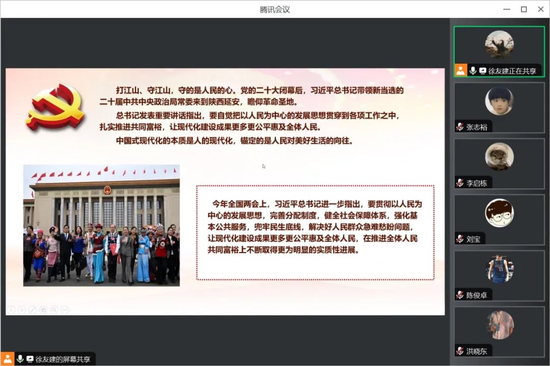 会议的最后,支部书记徐友建对会议进行总结:强国建设、民族复兴的宏伟目标令人鼓舞,催人奋进。我们要只争朝夕,坚定历史自信,增强历史主动,坚持守正创新,保持战略定力,发扬斗争精神,勇于攻坚克难,不断为强国建设、民族复兴伟业添砖加瓦、增光添彩!