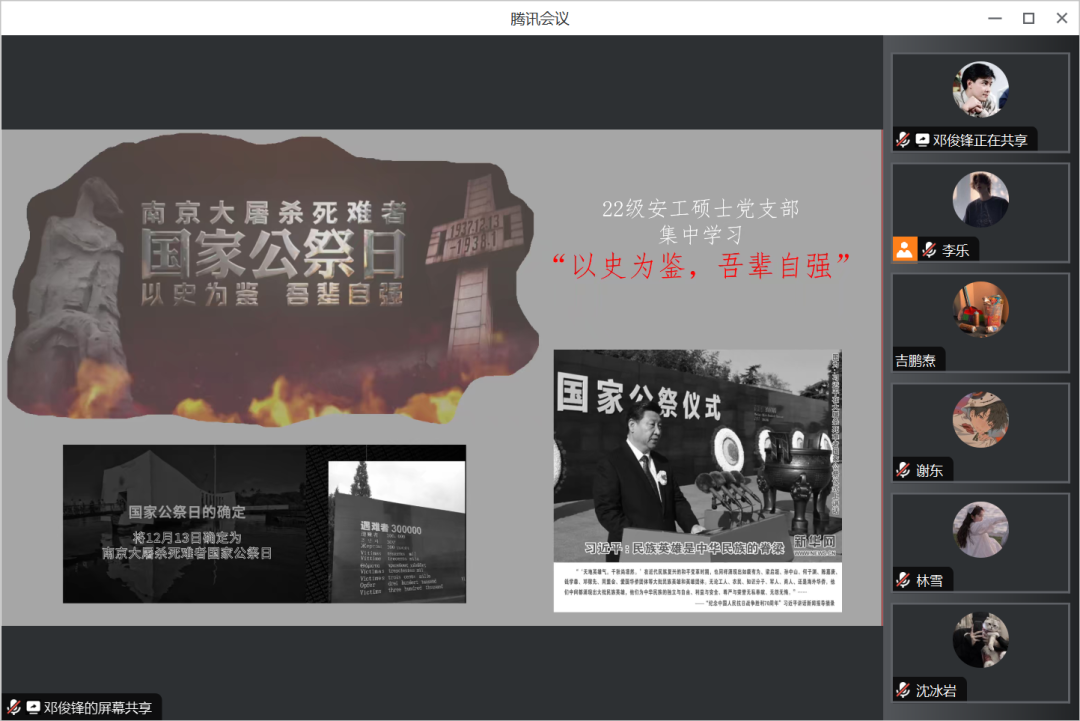 2022级安工硕士党支部以“以史为鉴,吾辈自强---南京大屠杀死难者国家公祭日”为主题开展集中学习。