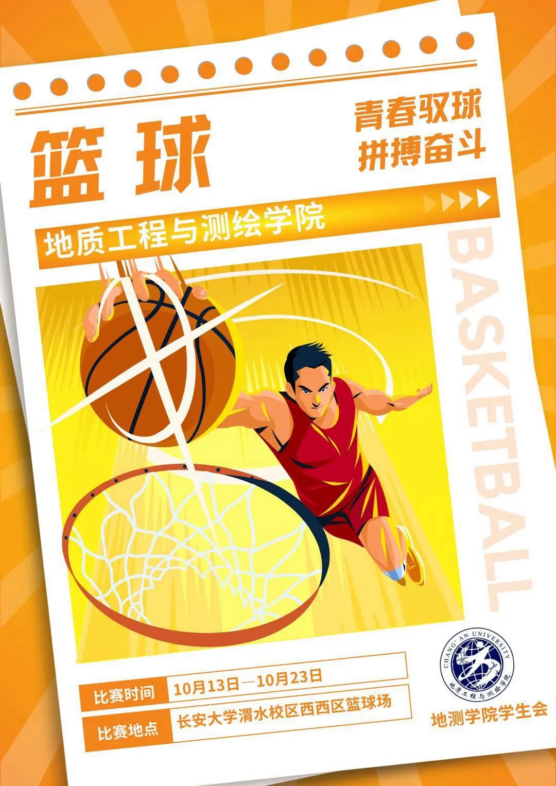 2023年"迎新杯"篮球赛将于10月13日中午12:40进行小组赛的第一场比赛,欢迎广大同学来观看,为运动员加油呐喊!