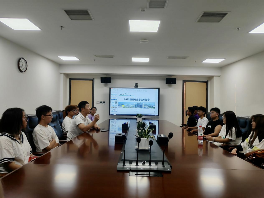 于师生服务大厅二楼第一会议室举办了2022级转入本科生欢迎会。本次欢迎会由2022级辅导员陈子毅主持,学工办主任段少帅、2022级辅导员韩树鹏和27名转入学生参与了本次活动。