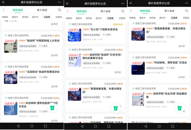 除此之外,地测科协在创新创业相关领域的活动宣传方面也做到了全方位、全阶段、全范围。对校内外的创新创业活动、科创赛事均有宣传,收集了来自校内各年级的创新创业计划,积极开展了专业介绍、赛事讲解、学科发展等活动;各种宣传贯穿各项活动、赛事所有阶段;宣传对象面向各年级同学。在这样的体系下,地测科协在宣传方面取得了显著的成效。