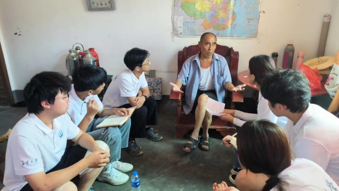 上午11时,实践队员们前往到78岁老党员王铁树同志的家中进行采访。他加入中国共产党已有53个年头。年轻时是奋战在村里一线的党员干部,为二郎庙村奉献了整个青春。谈到近年来村子各方面的发展,王铁术同志感慨道,在乡村振兴战略的推动下,村子的教育质量不断提升,交通设施日渐完善,住房条件也得到了明显改善。在访谈的过程中,王铁术同志的身上无时无刻不绽放着党员的思想觉悟之光。最后王铁术同志对实践队员们寄予厚望,希望同学们努力学习、接续奋斗,为全面建设社会主义现代化国家新征程贡献力量。