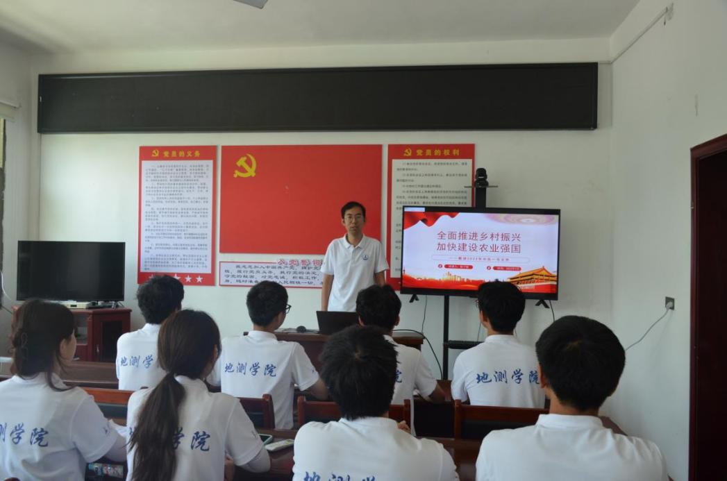 中午12时,实践队指导老师陈子毅在二郎庙村党支部活动室以“全面推进乡村振兴,加快建设农业强国”为主题进行党课讲授,并带领同学们共同学习2023年中央一号文件。从而使同学们对中国共产党为扎实推进乡村发展、乡村建设、乡村治理工作,加快建设农业强国,建设宜居宜业和美乡村所做出的不懈努力有了更深刻的体会。