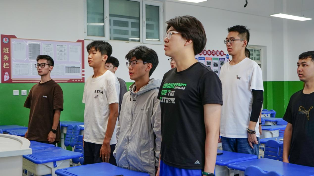 赴新疆巴音郭楞“践悟党的二十大·携手共绘同心圆”暑期社会实践队在焉耆县第一中学知性楼4楼高三(五)班隆重举行了临时党支部成立大会暨主题教育党课。实践队指导教师韩树鹏担任临时党支部书记,实践队志愿者预备党员张博晨担任组织委员,实践队志愿者预备党员陈晓龙担任宣传委员。