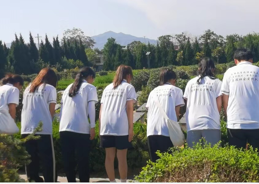 图为实践队员向革命先烈鞠躬致敬