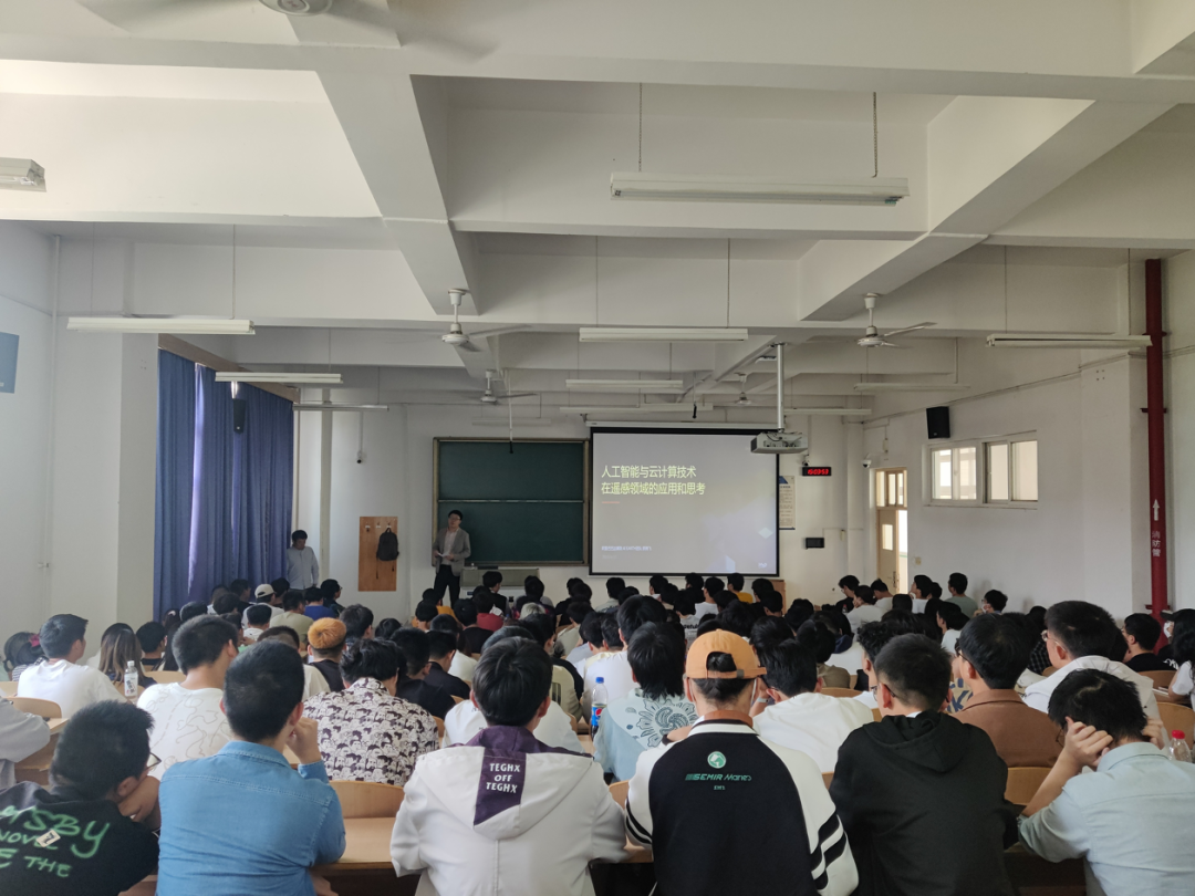 于2023年4月15日下午15:00举办了“人工智能与云计算技术在遥感领域的应用和思考”主题讲座。主题报告邀请到阿里巴巴达摩院产品解决方案架构师薛腾飞博士为主讲,2022级测绘类本科生近两百人参会。本次讲座由测绘科学系教师余琛教授主持。