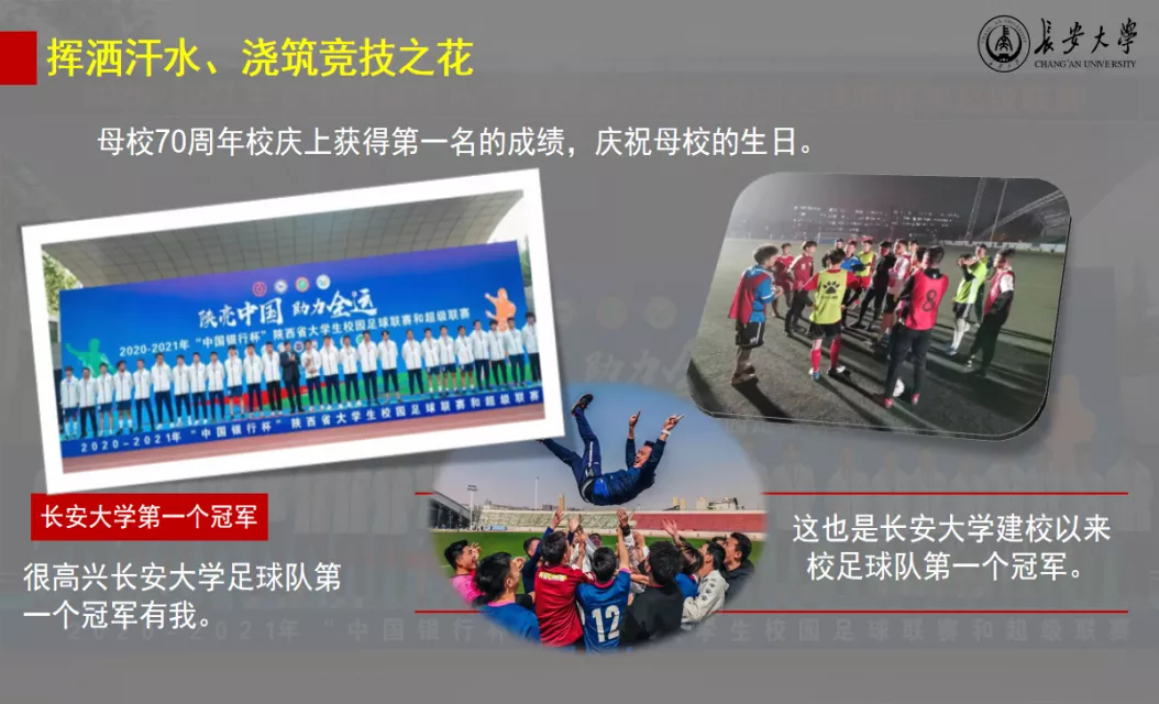第一个冠军。传承体育竞技精神,展现长大学子奋进风貌,艾合买提江用汗水浇灌足球之花,收获了绿茵场上的累累果实。