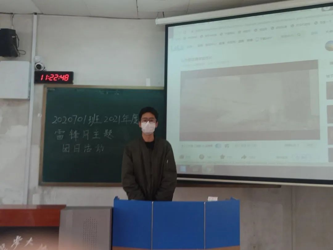 活动伊始,团支书徐子惠向同学们介绍了雷锋同志的生平。“雷锋同志享年22岁,但我们从他短暂的生命历程中见证了他高尚的道德品质和深刻的思想觉悟。无论是在工作上还是思想上,他一生都不曾停止追求进步,即使自己的生活拮据困顿,也始终把党和国家、人民群众的利益放在首位。”并播放《雷锋在1959》电影片段。