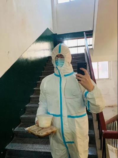 地质工程系刘聪老师,自16日起加入南校区东院的抗疫志愿者队伍,成为了2号教学楼的楼长,帮助滞留老师去食堂取饭、分餐。刘老师说:“感谢学校、学院的领导对被隔离的每一个人的关心,戴宏书记经常关注我们的状态,鼓励我们,并希望我们能做点力所能及的事。我觉得作为一个党员,一个高校老师,能在疫情期间,做一些力所能及的事情,对战胜疫情出点力,是一件非常有意义的事。我愿意继续为战胜疫情做出自己的努力。”