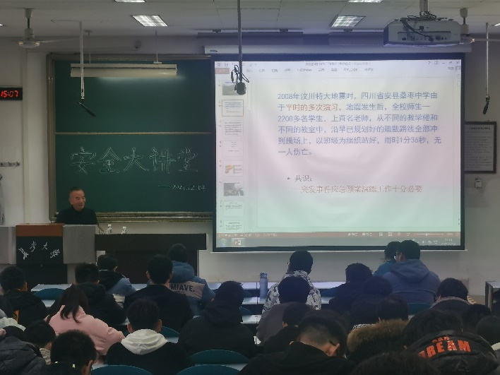 最后,董为民老师结合自己的工作经验为同学们讲解预案管理和演练工作体会,以汶川大地震时四川省安县桑枣中学经过平时的演习,在地震发生时有序逃离、无人伤亡的事件为案例,强调了突发事件应急预案演练工作的必要性。