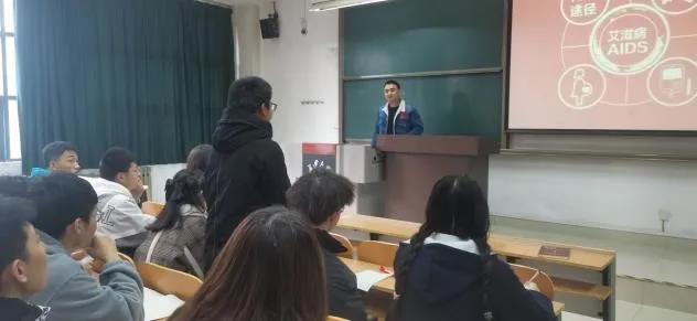 在北校区明远1215教室举办“百千万校园行”防艾知识宣传教育讲座。本次讲座由21级辅导员杨海城老师主讲,21名学生志愿者参加。