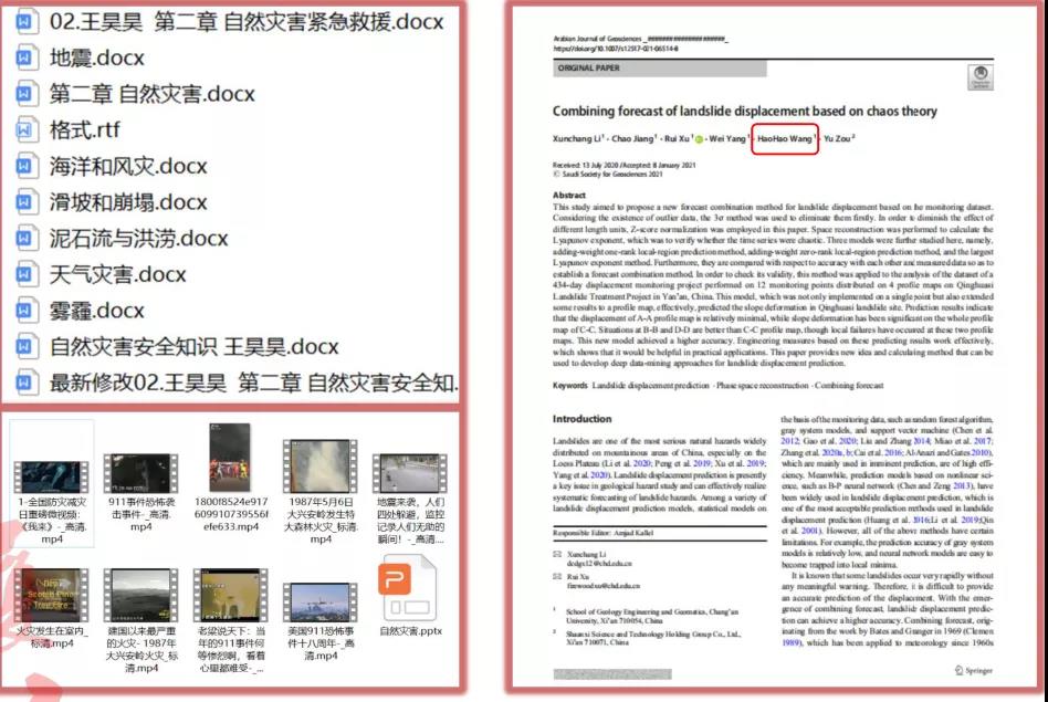 参与创建“蓝灵安全文化”微信公众号,传递安全知识科普;编写科普书《公共安全与应急救援》,协助老师撰写关于滑坡治理的论文且已发表。