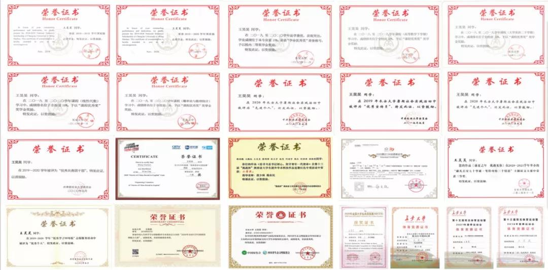 星辉协会部长。获2020年全国大学生英语竞赛三等奖、第十三届“挑战杯”陕西省课外学术科技作品竞赛红色专项活动省二等奖;获校级精品活动“优秀学子回母校”优秀组织者称号2次;带领青志队获得中国扶贫基金会授予的“爱心团体”称号以及“校级优秀学生社团”称号。获得国家励志奖学金3项、校园贡献奖、学业优秀奖、课程优秀奖等。前三学年学业成绩均处专业前10%,现已保研至西北工业大学。