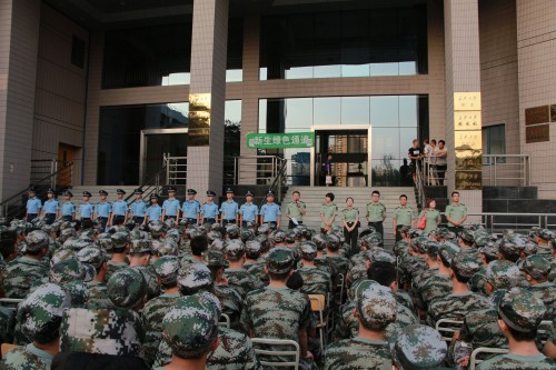 所属第八团的团长、政委、连排长及指导员。之后,他向新生们提出军训以及开学典礼纪律要求。滑书记强调,军训是大学生活的开始,也是学生步入大学的第一课,同学们应在军训期间尽快适应大学生活,并在以后的学习生活中严格遵循学校及学院的相关纪律。