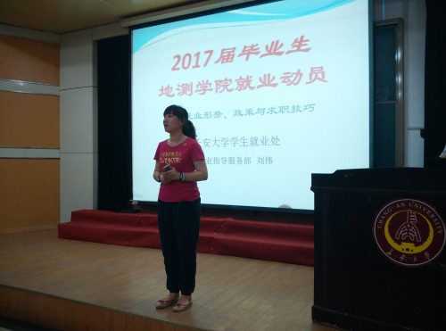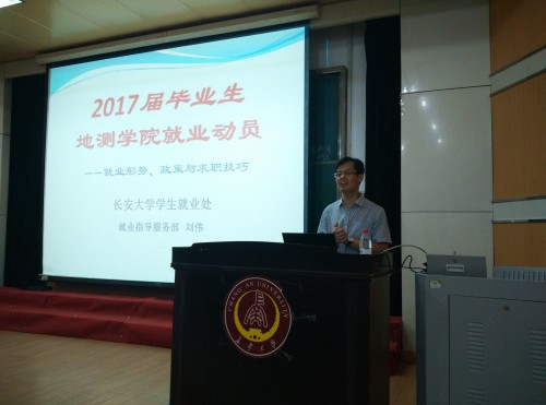 2017届研究生毕业生做了一场就业指导讲座。讲座由学工办主任潘迎主持。