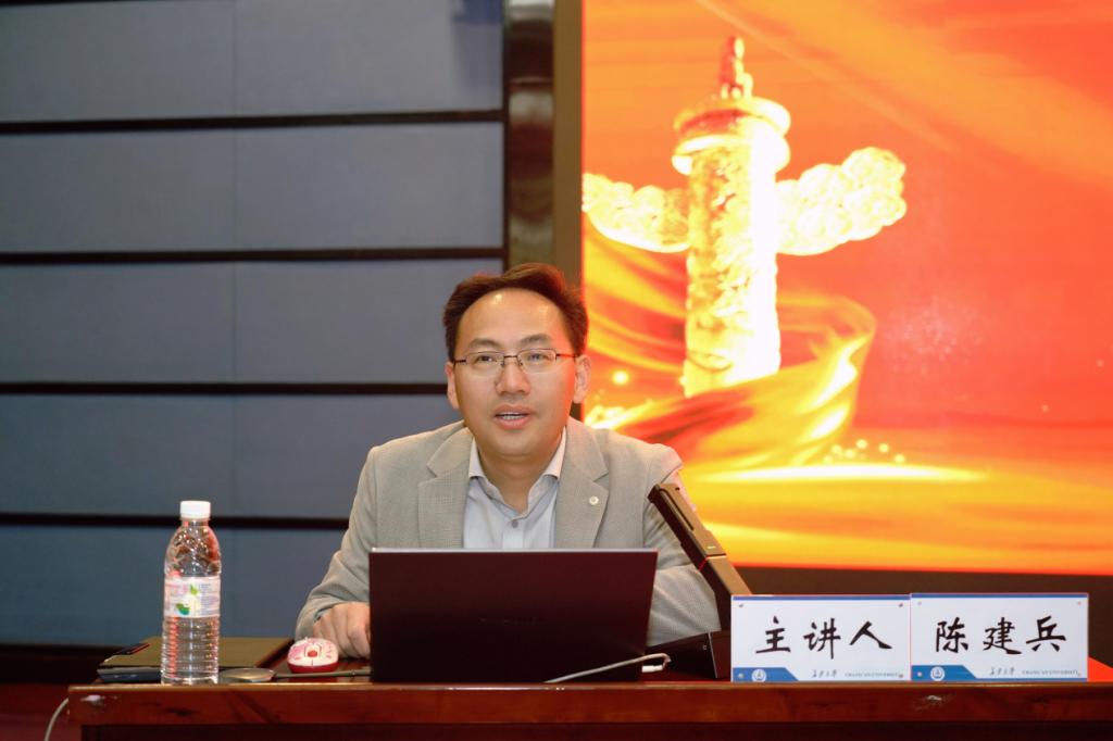 陈建兵主要围绕“两路”精神的缘起,“两路”精神在中交的践行与传承,新时代“两路”精神的价值与意义三个方面展开讲授。他指出,“两路”精神是交通人乃至全社会不可或缺的信念之基和动力之源,其主要内涵“一不怕苦、二不怕死”,体现了共产党人的敢教日月换新天的英雄气概,确保面对极端恶劣环境上得去;其次是“顽强拼搏、甘当路石”,体现了中国共产党人担当奉献,无私无畏的品格,确保“两路”畅通无阻;最后是“军民一家、民族团结”,体现了共产党人军民鱼水,各族一家的博大胸怀,确保各族人民的心稳得住。陈建兵介绍到,中国交通建设集团是两路精神重要的践行者和传承者,七十余年来,几代人长期坚守高原,千余工程技术人员踏遍进藏公路,秉持“老西藏”精神和“两路”精神。坚守与创新,成为中国交通建设集团的突出特色,既是对“两路”精神的直接传承,又赋予了“两路”精神以鲜明的时代印记。