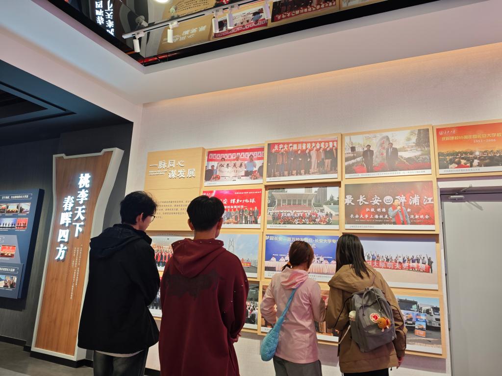 小组成员在照片墙前驻足凝视