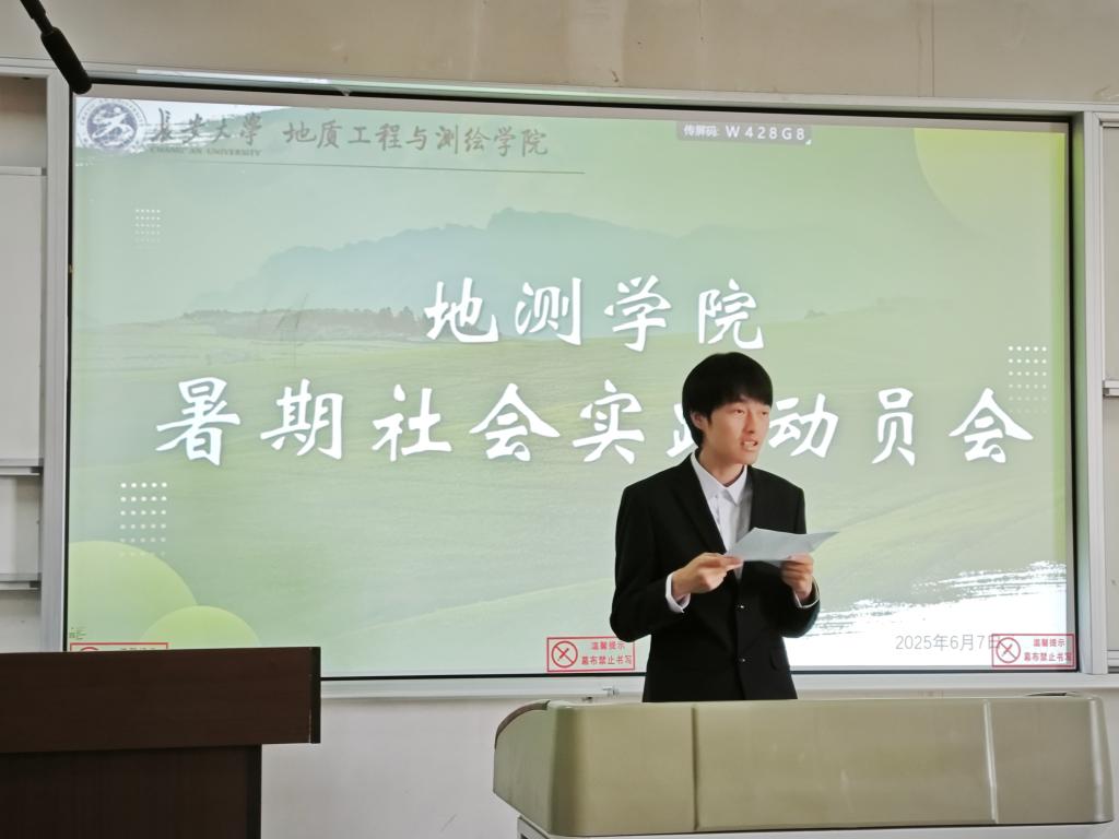 2025年暑期社会实践全面启动。这是地测学子践行社会责任、锤炼意志品质的重要平台,更是青年一代将个人理想融入国家发展大局的生动实践。后续学院将紧扣“学思用贯通、知信行统一”目标,引导青年学子在社会大课堂中“铸魂、增智、强能”,努力成长为堪当民族复兴重任的青年实干家,以实践之笔书写青春答卷。