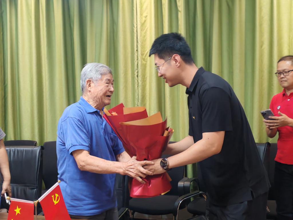 研究生辅导员朱禹诚及研究生党员代表,共同探望离退休干部贾辉老师。
