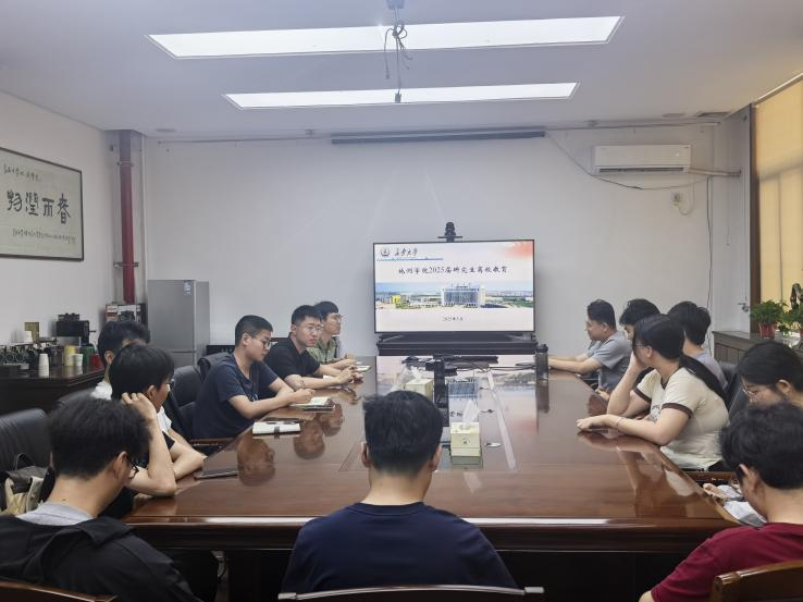 在学院楼110会议室召开2025届研究生毕业离校教育会议。会议由学院研究生辅导员王儒豪、朱禹诚主持,毕业学生代表参与。