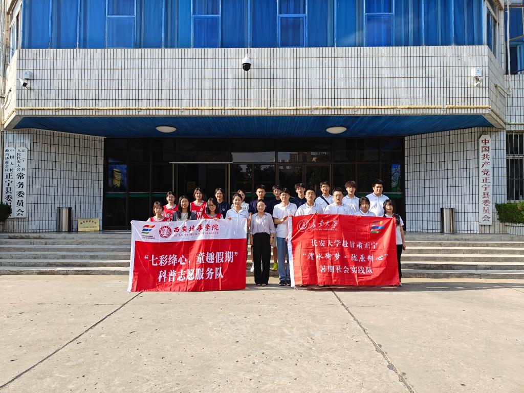“渭水衔梦·陇原耕心”暑期社会实践队一行15人在指导老师李萍教授、李同录教授和沈伟副教授的带领下,前往甘肃省正宁县北辰小学,开展为期5天的实践活动。队伍成员利用自身专业优势,以科普赋能教育振兴为核心,联合多所高校,开展了一场主题鲜明、内容丰富、成效显著的社会实践活动。