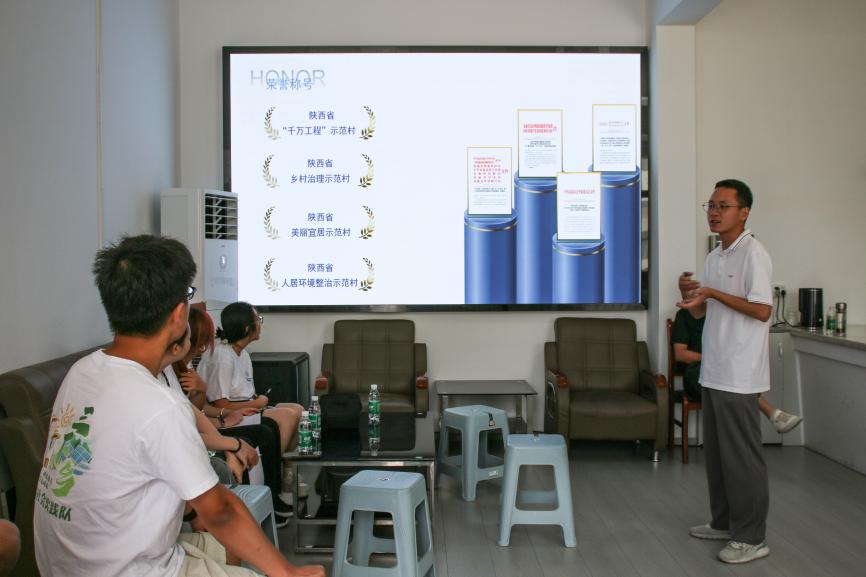 结束了张营村的行程后,队员们来到了刘营村,胡旋从交通地理条件、历史文化底蕴,到当今支柱产业和文化生活等方面对刘营村进行了初步介绍。队员们了解到,刘营村东临毛湾村,西至白马石村,距安康富强机场3.2公里,十天高速安康西服务区坐落其中,拥有便捷的交通条件。同时,刘营村拥有着丰厚的文化底蕴,出土了大量的秦汉遗址文物,为陕西历史博物馆馆藏添砖加瓦。