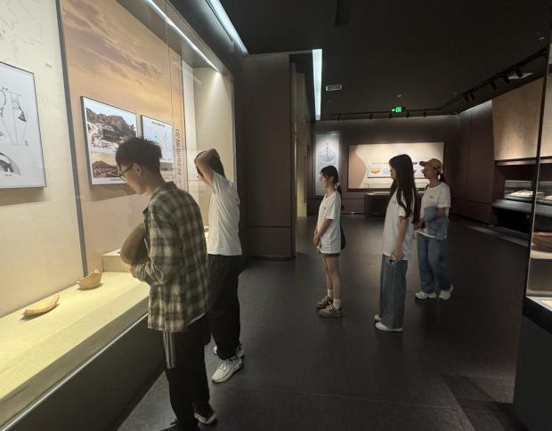 随后,实践队走进定西市博物馆。马家窑文化彩陶的旋纹间仍可见先民与自然共生的智慧,秦汉文物的斑驳痕迹中凝结着陇中大地的历史厚重。从展品追溯的不仅是文明脉络,更有定西人民在党的领导下,突破“陇中苦瘠甲天下”困境的奋斗历程。这种植根于历史、升华于新时代的“陇中精神”,与党建引领下的脱贫攻坚实践深度交融,成为推动当地发展的精神内核,让队员们深刻理解了“幸福不会从天而降,好日子是干出来的”的深刻内涵。