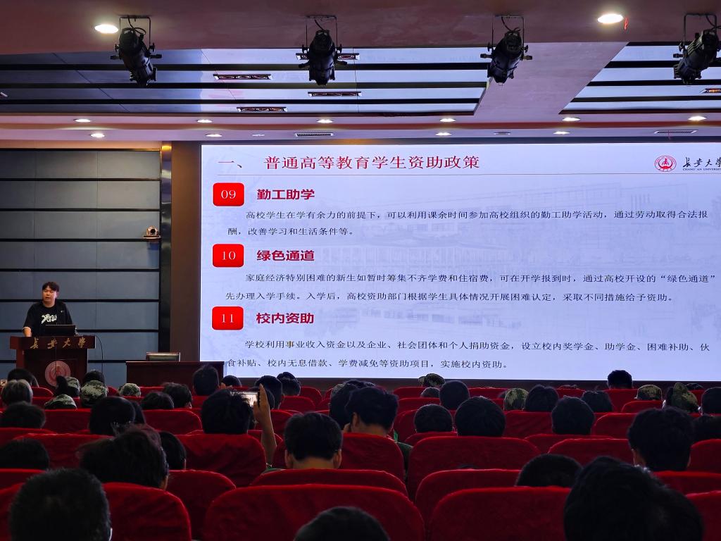 在北辰楼会议中心二层报告厅举办了新生资助政策宣讲会。本次会议由24级辅导员刘永旭主持,旨在帮助2025级新生明晰具体的申请条件与流程,确保资助政策应知尽知、应享尽享,助力学生无忧入学、安心求学。