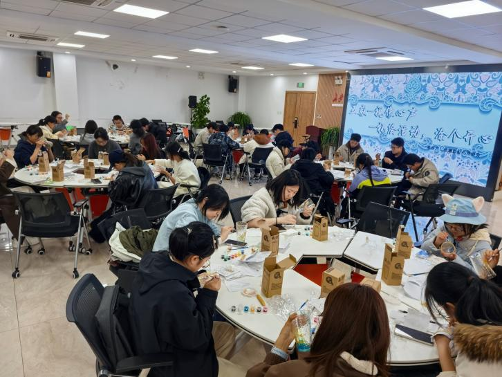 彩虹驿站于北校区朝晖园示范性园区团体活动室成功举办了“杯绘心声”手绘杯子活动。本次活动吸引了三十余名同学参与,大家在创作中放松心情,在色彩里邂逅美好,共同度过了一个宁静而充实的夜晚。