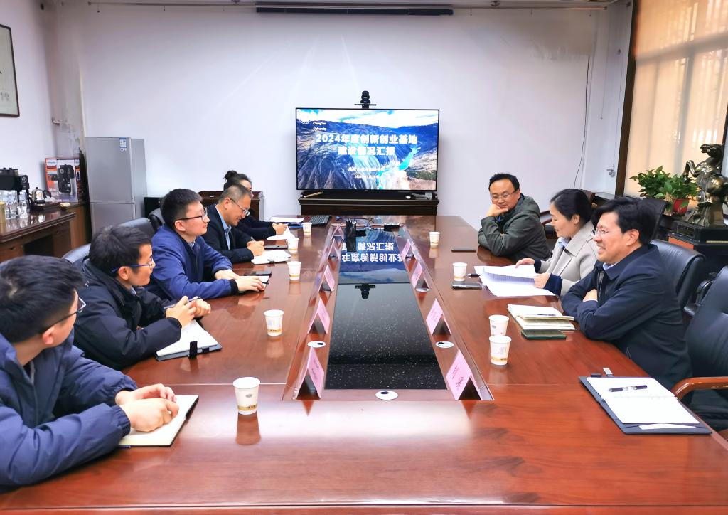 李院春对学院2024年度创新创业教育实践基地建设以及突出学生参与竞赛、创新实践能力培养的创新创业教育模式给予充分肯定,帮助梳理、总结了历届大赛优秀获奖项目的特点,讲解分析了赛道特点、参赛项目来源、选题策略等,并就基地建设和多种方式促进创新带动创业方面提出针对性建议。