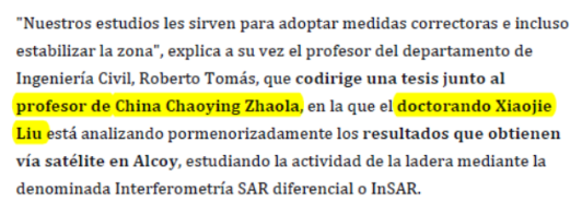 与西班牙阿利坎特大学联合成功预警Alcoy市滑坡灾害的新闻(图1),受到Alcoy市政部门、市议会以及西班牙PAZ数据生产方的高度评价。