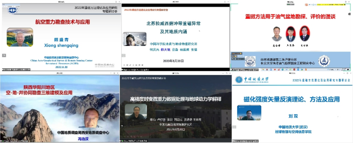 纪晓琳博士主持。行业内有影响力的6位特邀专家中国自然资源航空物探遥感中心熊盛青教授级高级工程师、中国科学院地质与地球物理研究所郝天珧研究员、自然资源部第二海洋研究所高金耀研究员、中国地质调查局西安地质调查中心冯治汉教授级高级工程师、中国地震局地球物理研究所陈石研究员、中国地质大学(武汉)刘双副教授分别作了线上报告,报告聚焦于重磁数据采集、数据处理、重磁正反演方法理论及技术、重磁方法解决的实际问题及相关应用等方面。