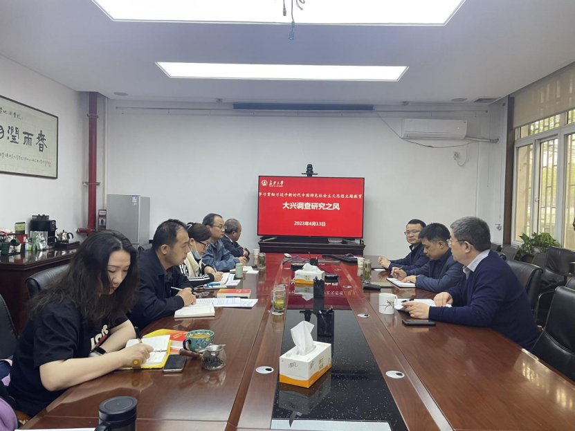 会议室举行学习贯彻习近平新时代中国特色社会主义思想主题教育第二次集中研学活动,活动由党委书记戴宏主持,理论中心组全体成员参加。