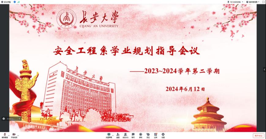 本科生学业预警与帮扶办法(试行)》(长大教〔2022〕31号),为了响应教务处的号召,全面落实本学期学业预警与帮扶工作,以及助推安全工程系预警学生顺利完成学业。安全工程系于2024年6月12日晚7:30通过线上平台召开了学业规划指导会议。安全工程系全体教师和全部安全工程系预警学生参加了会议,会议由系副主任李凯玲副教授主持。