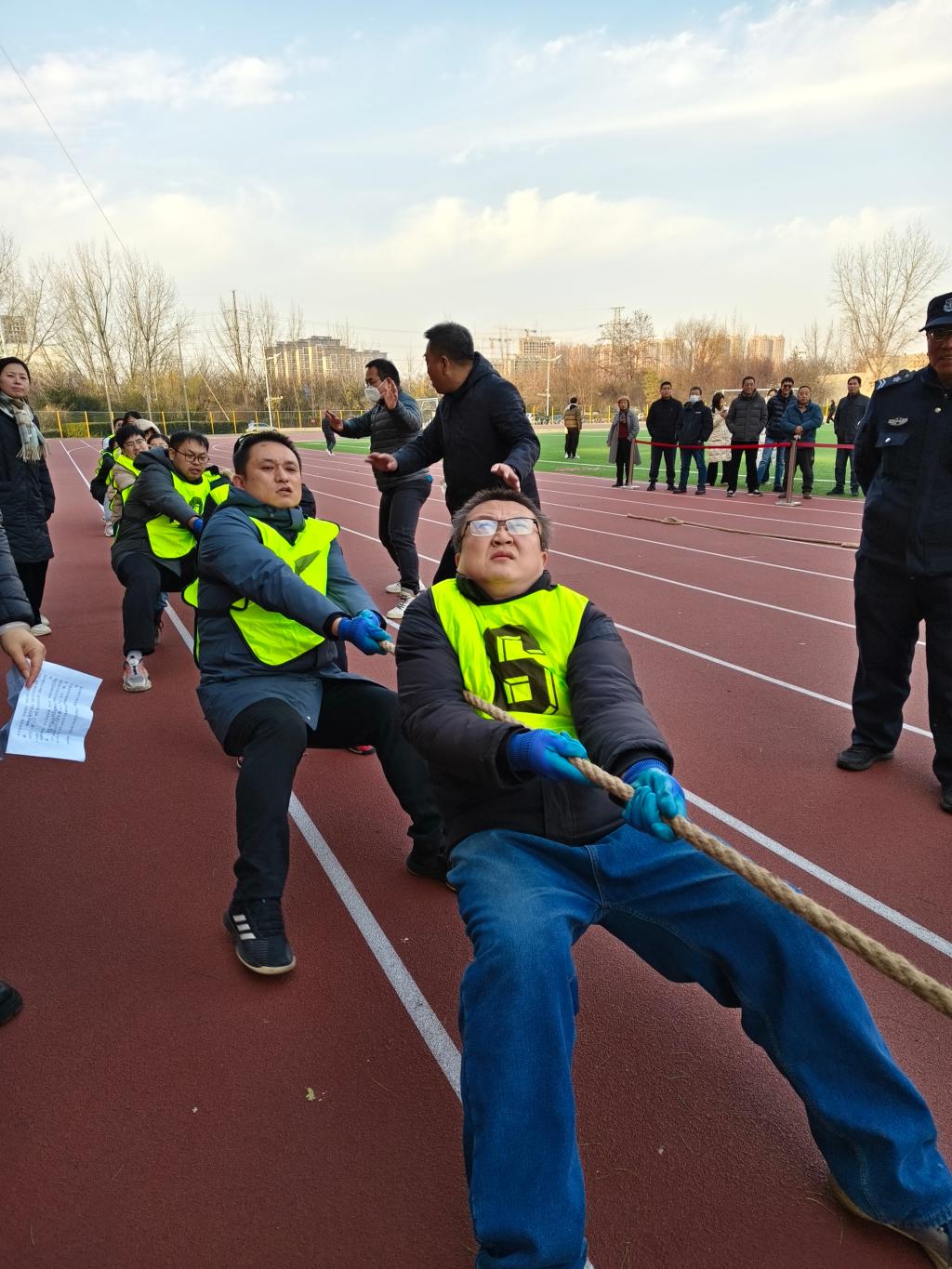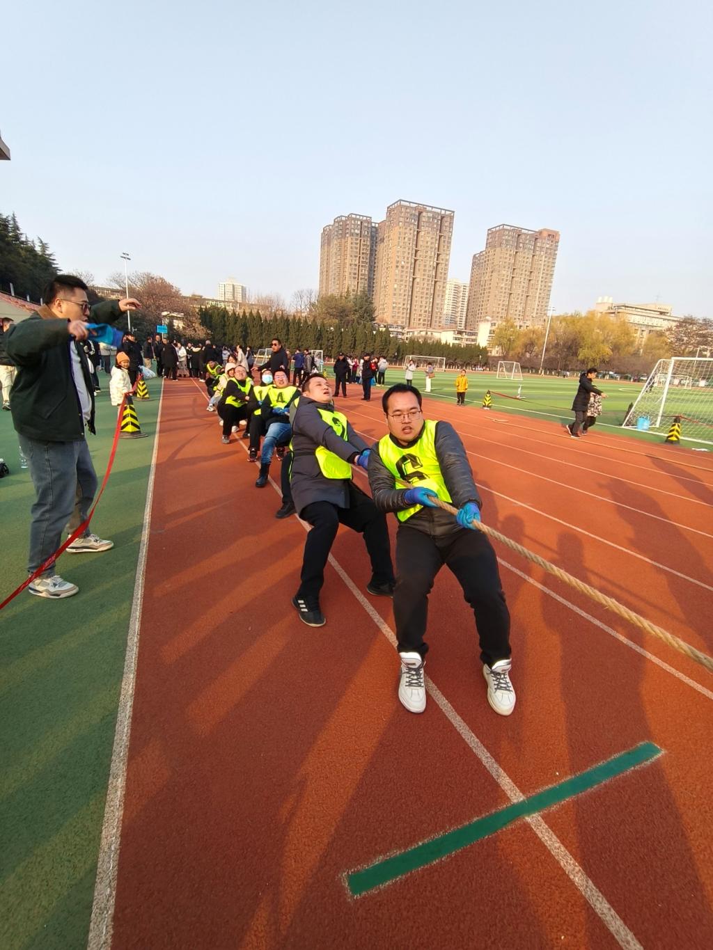 “迎新年共赴新征程·战拔河喜迎党代会”教职工拔河比赛成功举行。25日下午,小组赛在校本部北院操场进行,每组三个参赛队伍淘汰制筛选出第一名进入淘汰赛阶段。26日下午,共八个参赛队伍进行淘汰赛角逐。色情漫画