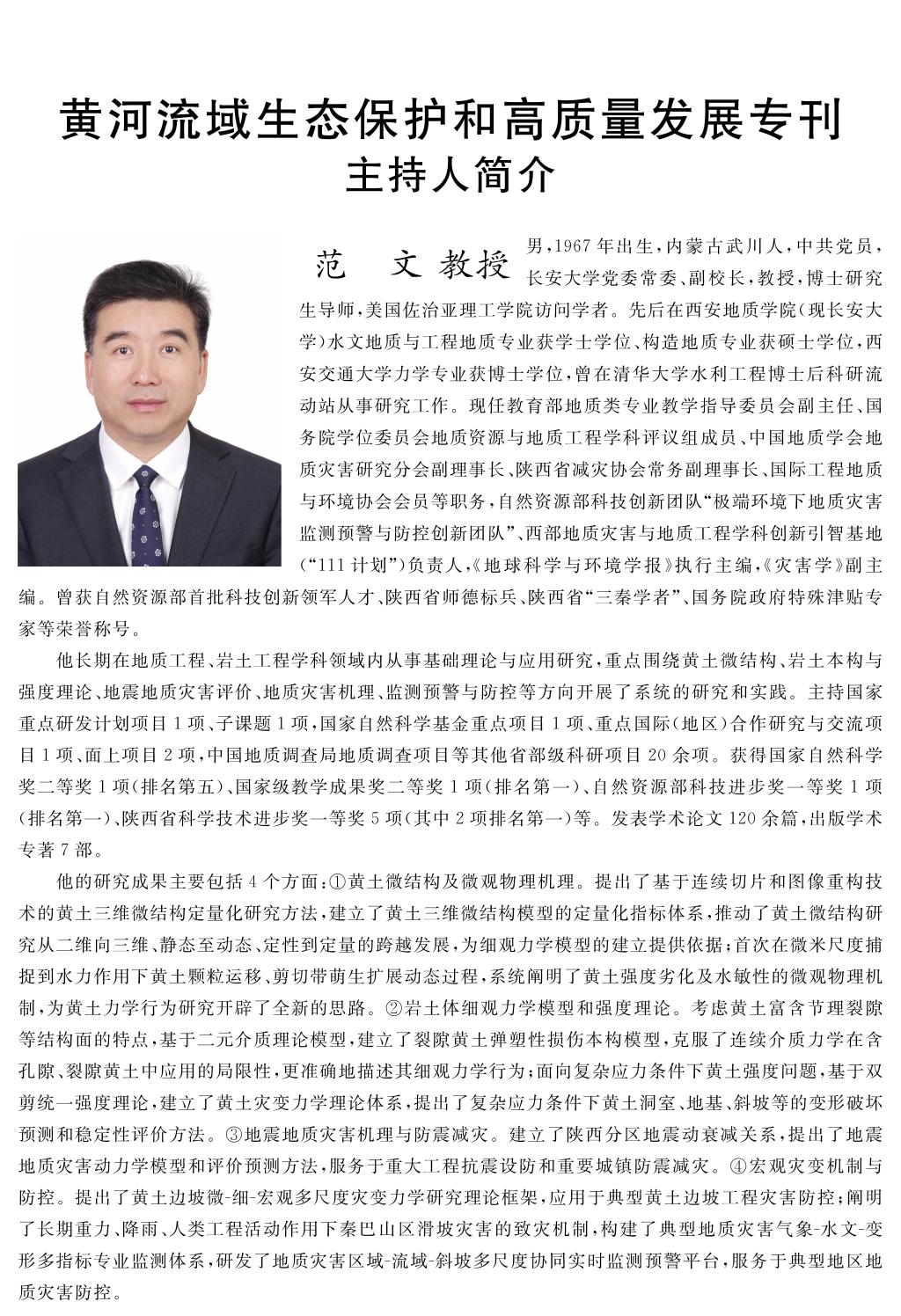 范文教授在《地球科学与环境学报》策划出版了“黄河流域生态保护和高质量发展专刊”。