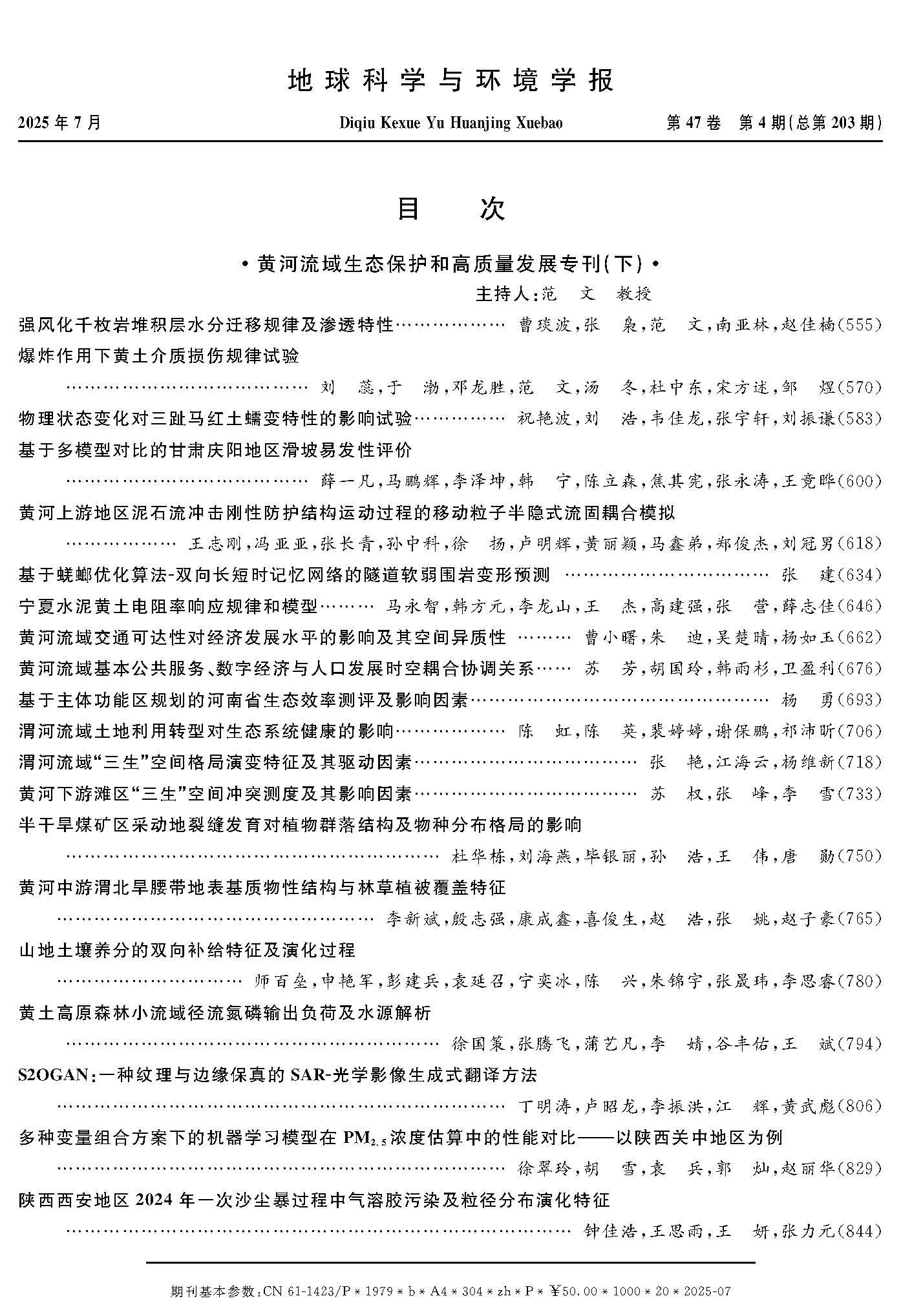 《地球科学与环境学报》未来将持续服务“黄河流域生态保护和高质量发展”国家战略,聚焦“和谐黄河、生态黄河、文化黄河、绿色黄河、气候黄河、宜居黄河”策划系列专刊,为黄河流域生态保护和高质量发展贡献更多学术智慧。