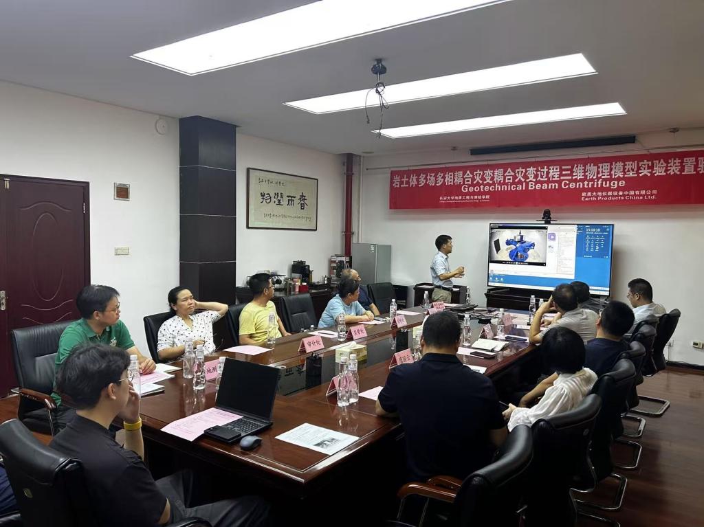 与供应商欧美大地仪器有限公司分别就设备建设情况、技术参数、调试过程等内容进行详细汇报。随后,专家组深入设备现场,对系统运行状态、性能指标进行实地考察,并围绕技术细节展开质询。经过严谨的讨论与论证,专家组一致认定:岩土体多场多相耦合灾变过程三维物理模型试验装置”的各项技术指标达到采购合同及技术协议的要求,设备现场运行稳定可靠,顺利通过验收。