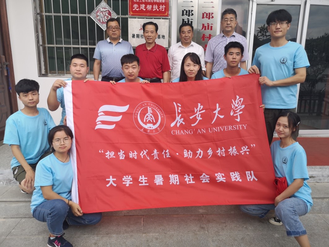 师生,并与二郎庙村村支书李红共同为大学生暑期社会实践基地揭牌。