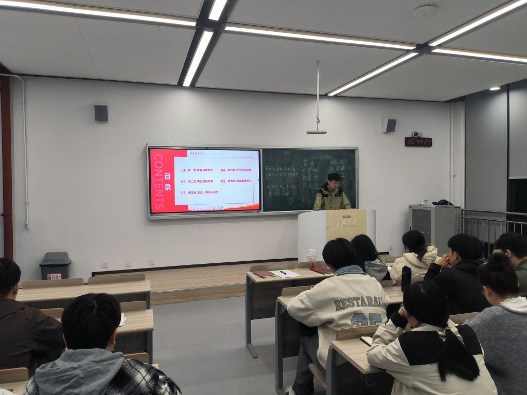 本科生第六党支部于3月13日晚上,在WH1310教室开展“学习两会精神,凝聚奋进力量”主题党日活动暨2024年度组织生活会,支部全体党员参与本次活动。活动由阚红淼同志主持。